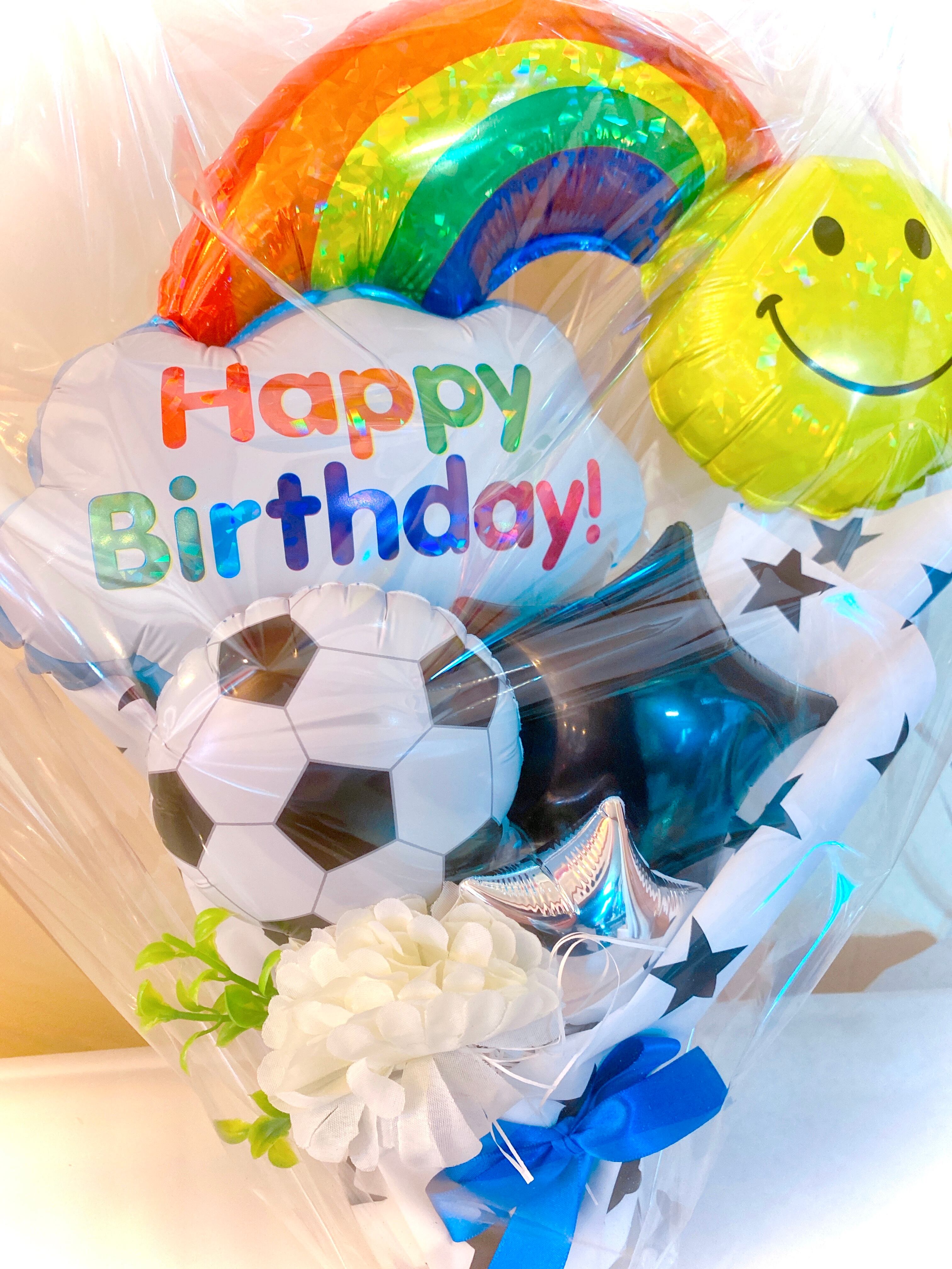 ニコちゃんとサッカーボールのバルーンバースデーアレンジです⭐︎